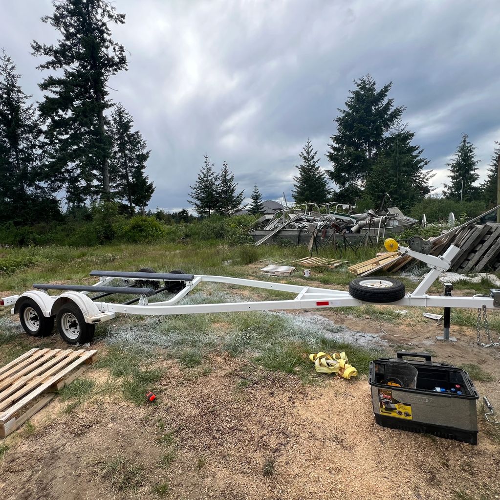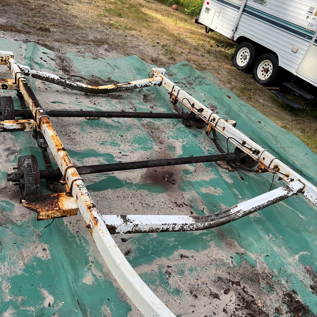 This trailer arrived from Alberta heavily oxidized, with advanced rusting across the frame and axles. The structure was wet blasted to bare metal, ensuring full removal of corrosion without damaging the frame integrity.